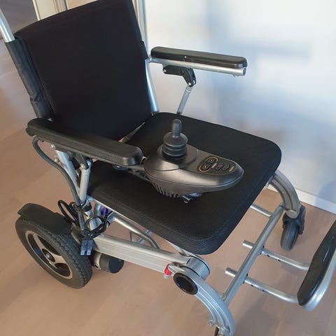 Hopfällbar promenadscooter inomhus och utomhus av märket Taberg, modell Elrullstol Taberg XFG -109FL.