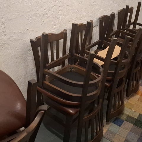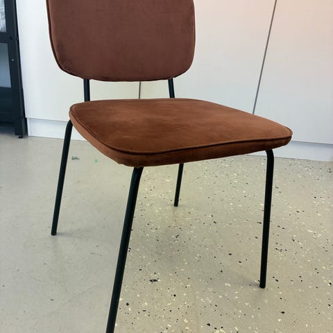 Jag säljer åtta stycken röda konstläderklädda bistrostolar i fint skick. De kan staplas lätt och är vattenavvisande för lätt rengöring. Väldigt stadiga och robusta tack vare den svetsade stålstommen.