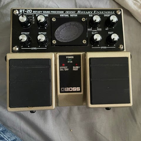Med nätaggregat och en häftig katalogaffisch i A3 över Boss häftiga pedaler m m från 2001.