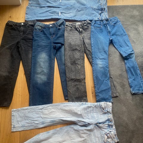 Andra raden 128, bla fodrade blå byxor och Ossoamijeans. 40-100 kr st