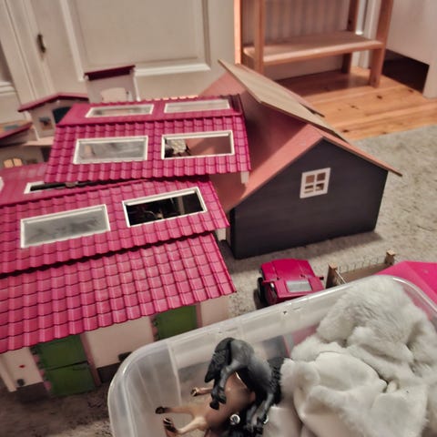 Stort paket med leksaker från Schleich säljes. Massvis med hästar, stall, hinder, tillbehör, hundar m.m.