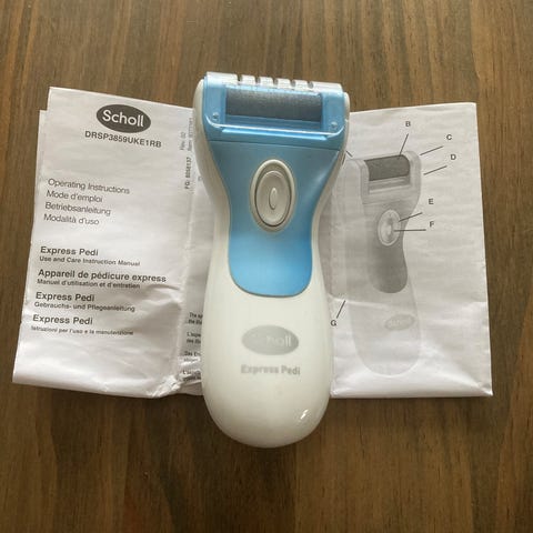Vattentålig, 2 huvud och ett lock. Två batterier inkluderade med en borste också. Enkel att sätta igång och att använda. Perfekt för torr hud gentemot en vanlig fil som inte är lika effektiv.
