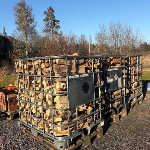 Fin björkved till kamin i 40 literssäck. Kluven september 2024. Kan ev. levereras till Skövde, Skara, Vara efter ök.