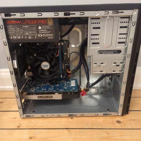 Jag säljer en äldre speldator i ett svart Ace chassi. Datorn kommer med Gigabyte z87m-d3h moderkort Intel Core i5 4570S cpu, 8GB ram, Radeon hd 5700 grafikkort, frontpanel med kortläsare och usb 3.0 kontakt samt två dvd brännare. Datorn kommer med Windows 10 samt Ubuntu.