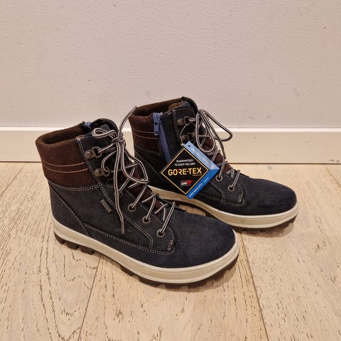Mkt sköna och snygga vinterkängor i textil/nubuck med Gore-Tex. Använda förra vintern varvat med andra vinterskor, så de är i mkt fint skick. Ullsula och praktisk dragkedja på insidan. Säljes nyimpregnerade i originalkartong. Nypris kring 1099-.