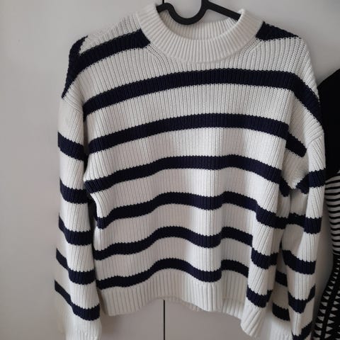 Randig stickad tröja i blått och ljusbeige. Fint skick!