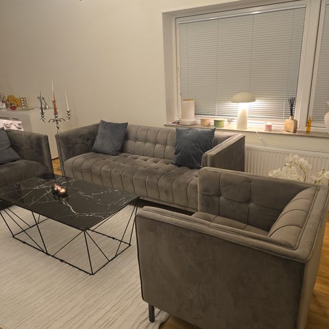 Soffgruppen är bekväm och är i bra skick tvåan har liten skada på sidan men den är inte så synlig.