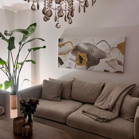 En väldigt fin och fyllig gran har sprayat i vit snö spray men går enkelt att ta bort . Mycket finare i verklighet .