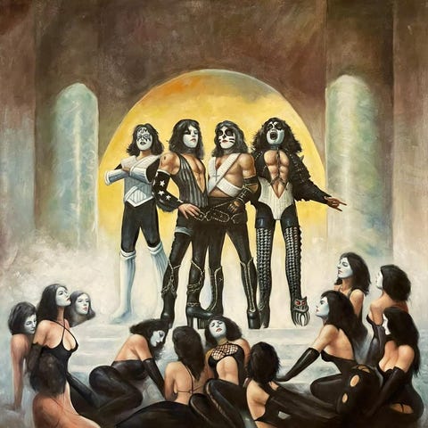 Stor (85x85 cm) och fantastiskt fint handmålad (äkta oljefärg) av motivet på Black Sabbath albumet Live Evil. Konstnärsduk. Kilram för uppspänning medföljer