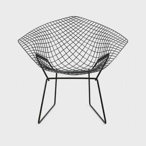 Diamond chair, Harry Bertoia. 2st för 8000kr tillsammans. Svartlackerat stål. Inköpta via Stockholms auktionsverk för 12år sedan. Smärre repor/färgbortfall. Ingen rost. Den ena stolen har 4 st gamla lagningar (se bilder) som gått upp men inget som påverkar komfort eller stabilitet.