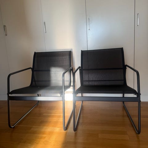 Säljer fyra stolar för uterummet eller uteplatsen. Köpta på Rusta 2024. Stått i uterummet sedan inköp. Höjd ca 95, bredd 55, sitthöjd 44