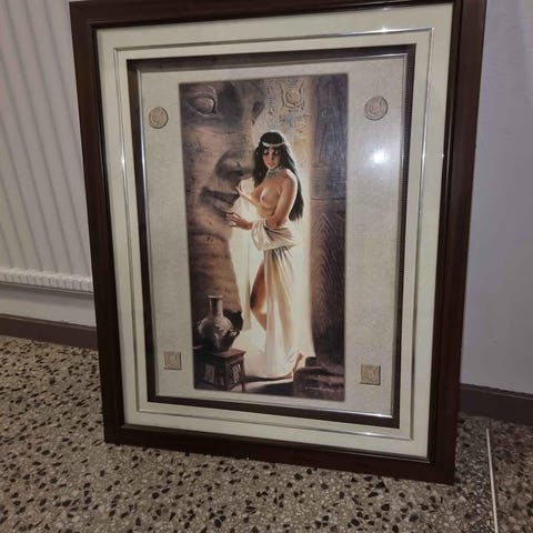 Tavla 80*60 cm ,motiv naken man o kvinna stående under en Svans vingar, romantisk passar bra till sovrum,väger lite, endast ram ,ej inglasad eller plexiglas på ramen