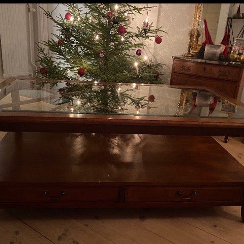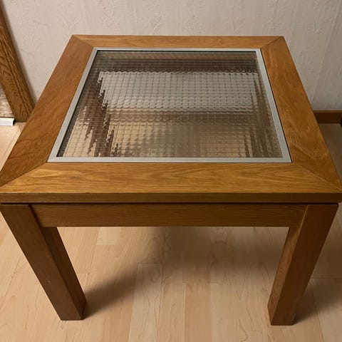Brun soffbord avlastningsbord tv-bord med glashylla under. Längd: 79cm, bredd: 79cm, höjd: 48,5cm.