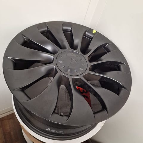 SUTTIT PÅ EN TESLA MODEL Y, DÄCKTRYCKSENSOR I DÄCKET FINNS.
