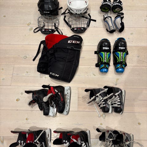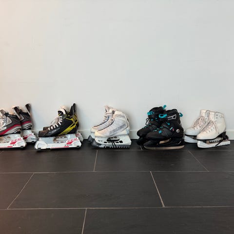 De till vänster är storlek 5-5,5 (246 mm) och kostar 600 kr, de i mitten är storlek 6-6,5 (254 mm) och kostar 700 kr, de till vänster är 4-4,5 (238 mm) och kostar 500 kr.