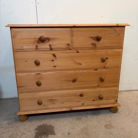 Byrå i ekfärg, bra o ha som förvaring, finns tydliga tecken på användning men funkar bra ändå, behövs hämtas snarast.