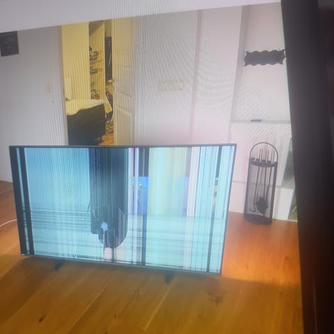 Lilla kastade sin bil och landade på TV. Det var ett nytt TV. Köpte förra året. Det går att byta innerskärm om man kan det annars, alla andra delar på TV funkar som det ska, inkl. LG smart-frärdkontrollen (nya fjärd typ > 1000sek)