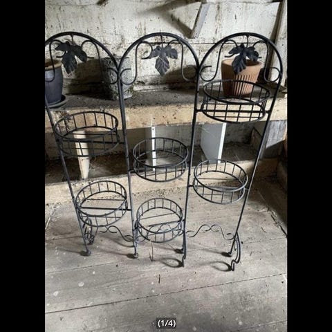 Stället har två runda korgar för placering av krukväxter eller andra dekorativa föremål.
