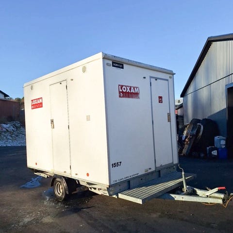 Perfekt som personalbod eller tillfällig byggbod. Finns lyftöglor för att lyfta hela vagnen.
