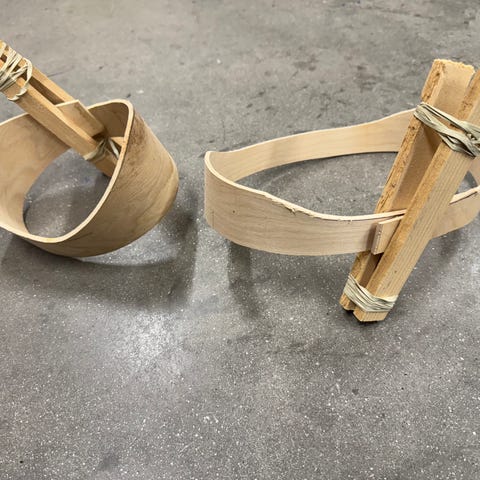 Massor av sågade och hyvlade faner 3-4 mm för att göra fler svep tll fat eller askar.