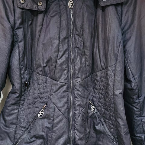 Mörkbrun täckjacka från Luhta i strl 46 med avtagbar huva. Dragkedja och knappar fram. Två ytterfickor och en innerficka med dragkedja. Avhämtning eller frakt.