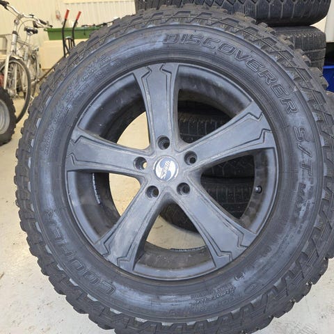 Cantera fälgar med cooper weathermaster friktionsdäck 255/60 R19. Har rullat i fyra säsonger, lite slitna men helt körbara. 5mm mönster kvar. En av fälgarna har några mindre skador (se bild)