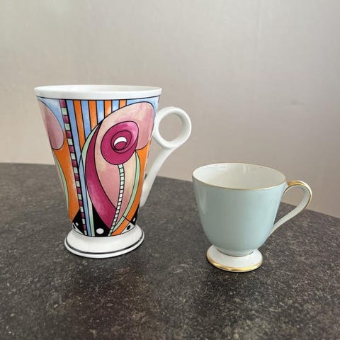 På bild 2: Rörstrand 6 koppar med 6 fat för 160 kr.