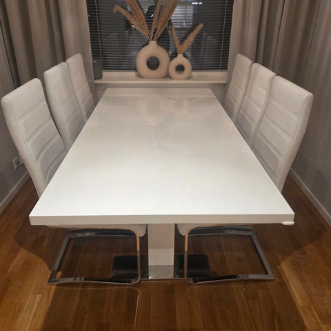 Säljer ett snyggt matbord med fyra matchande stolar, köpt nytt för bara sex månader sedan. Allt är i mycket fint skick, nästan som nytt.