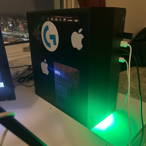 Flera 120 mm-fläktar, både på radiatorn (uppe) och baktill för luftflöde.