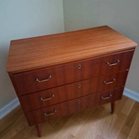 Byrå i mahogny 76cm hög och 29 cm bred. Några synliga tecken på användning, annars i bra skick.
