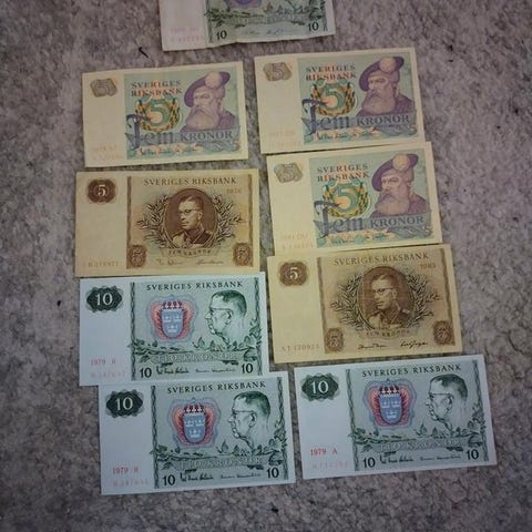 två stycken tavlor med svenska sedlar