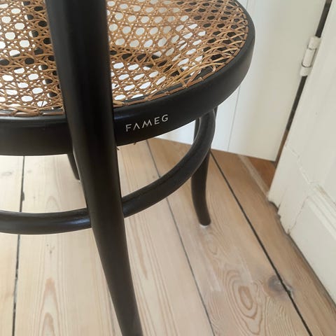 barpall ifrån Ton. No 73 i svartlackerad bok med lädersits i svart. Klassisk design med böjt bokträ och grå lädersits formgiven av Michael Thonet.