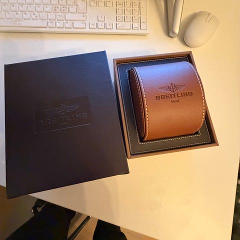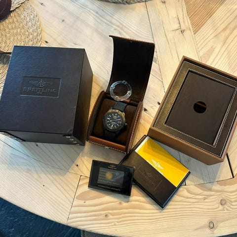 Mycket väl omhändertagen med originalarmband kvar. Just nu sitter det en NATO-strap från Breitling på, som även det följer med vid eventuell affär.