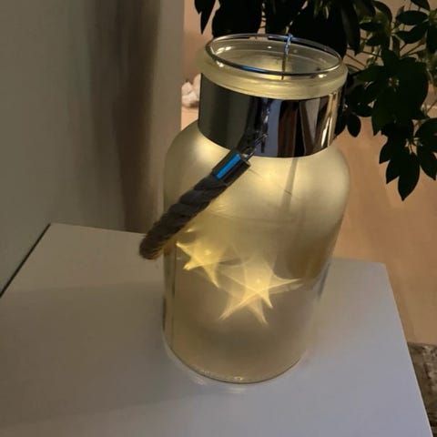 Lyktans höjd 22 cm, diam. 12 cm .Lätt att bära den. Rök/djurfritt.Hämtas.