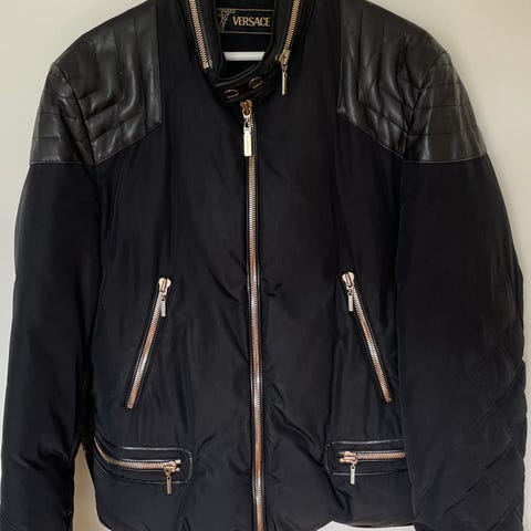 Välgjord och varm jacka med skinndetaljer vid dragkedjor/spännen och fårskinn i krage och muddar.