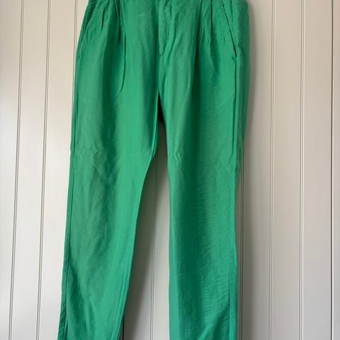 Snygga gröna Capri byxor från KappAhl med elastisk midja för extra komfort. Byxorna har en enkel design med två bakfickor. Passar bra till både vardag och mer avslappnade tillfällen.