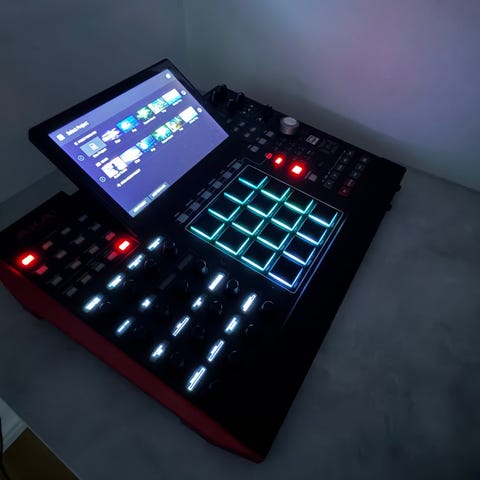 Två datorer, 1 stationär dator, en laptop, dator skärm, 2st krk 7 högtalare, 2 st mindre högtalare, 3 st midis keyboard, 3 st micar, stor mixerbord, en mindre ljud kontroller, 1st akai fire, 1 st fl-studio licens, massa plugins och instrument i dator, massa ljud, massa kablar, stor dator bord 3 meter bred, dator stol, osv osv.