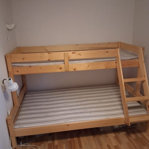 Mysig hussäng. Antingen har man en säng där uppe och en där nere. Eller så använder de utrymmet vid golvet som lekutrymme, t.ex kiosk eller koja.