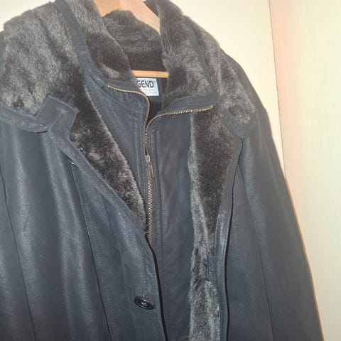 Fin vinterjacka i mockaliknande material med avtagbar pälskrage