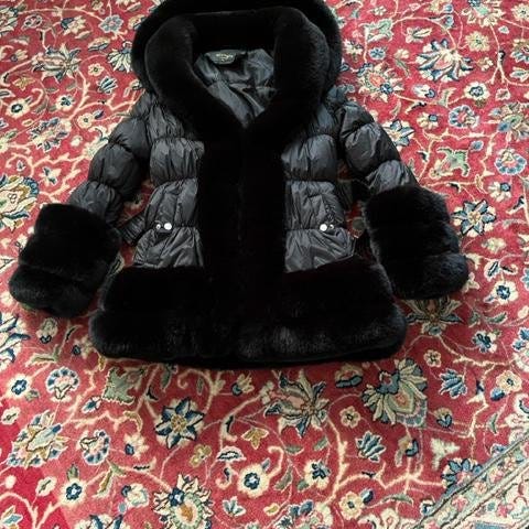 Elegant svart vinterjacka med luva i fuskpäls