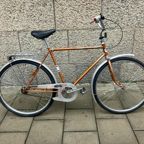 Stor sportig herrcykel från det svenska fabrikatet Regent i svart och röd kulör. Cykeln är utrustad med 12 välfungerande växlar och smala sportiga däck. Cykeln fungerar utmärkt och är körklar!