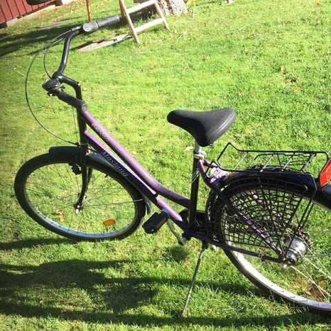 Crescent 26” (584 mm), ringklocka, baklyse/reflex för dynamo (saknas), bra däckmönster. Fungerar utan anmärkning. För användare upp till cirka 170 cm. Sadelöverdraget medföljer.