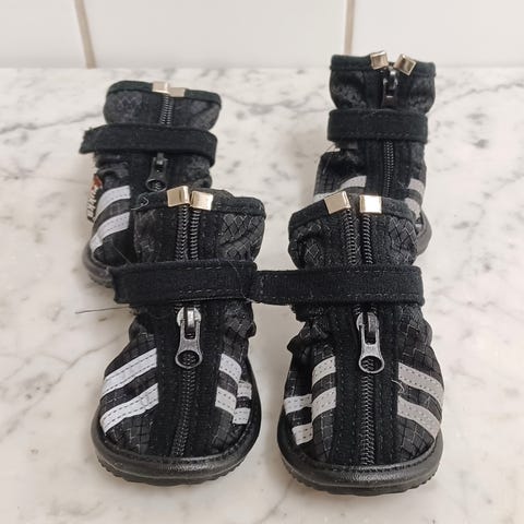 S & P Boots är både bekväma och praktiska. Materialet på ovansidan består av andningsaktiv, mjuk och formbar polyester. De halkfria sulorna gör att hunden inte trillar så lätt på hala och steniga vägar. Sulorna skyddar dessutom känsliga tassar mot kyla, grus, och salt.