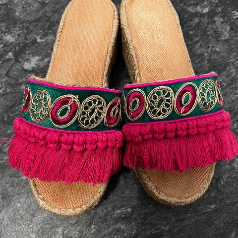 Som nya beiga sandaler med guldiga detaljer, använda en gång i storlek 38.