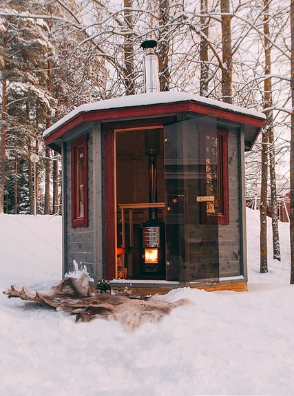 Vår bastustuga Funkis 4 har en stilren design, smart planlösning och snabb uppvärmnings tid.