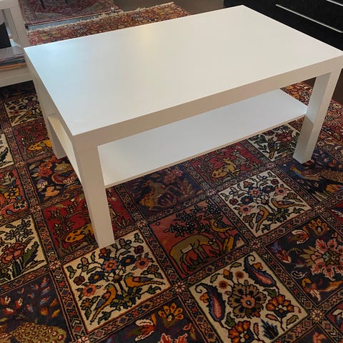 Säljer ett stilrent vitt bord i modern design. Bordet kan användas som soffbord, sidobord eller datorbord.