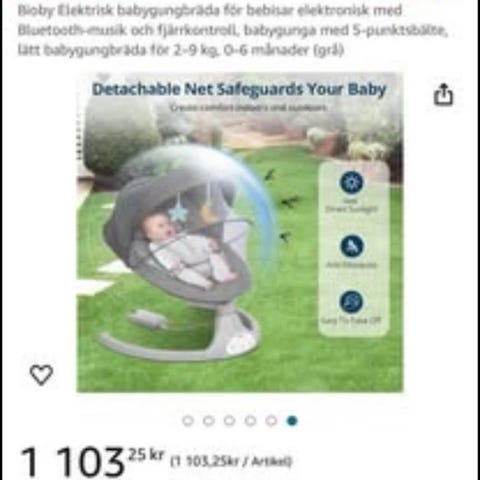 Bioby Elektrisk babygungbräda | Babygunga med 5-punktsbälte och 5 gunglägen, lätt och säkert gungbräda baby, elektronisk med Bluetooth-musik och fjärrkontroll, för 0–12 månader (2–9 kg), grå