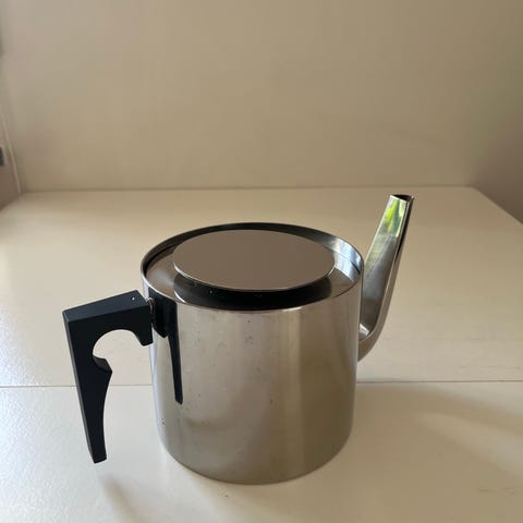 Steltons Cylinda-line kaffekanna formgiven av Arne Jacobsen – en dansk designklassiker (säljs fortfarande nya….annan prisnivå)