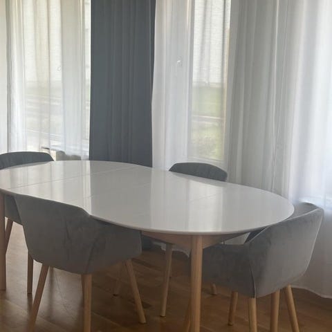 Ett år gammal bord i fint skick finns några repor på glasskivan.