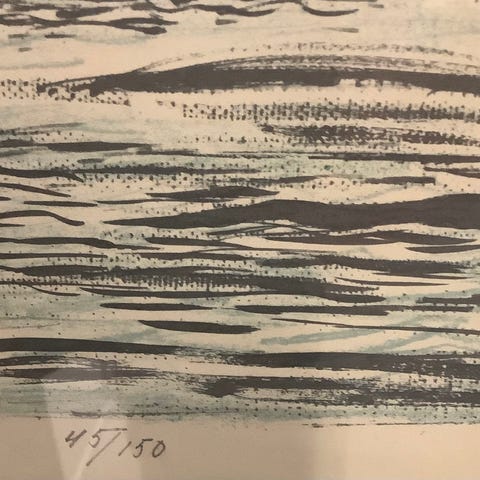 Trycket är i varma gula och svarta toner och är signerat samt numrerat 137/150.